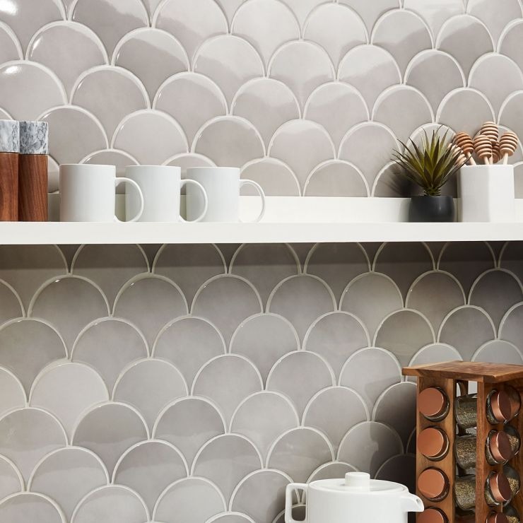 Mẫu gạch vảy cá ốp bếp đơn sắc